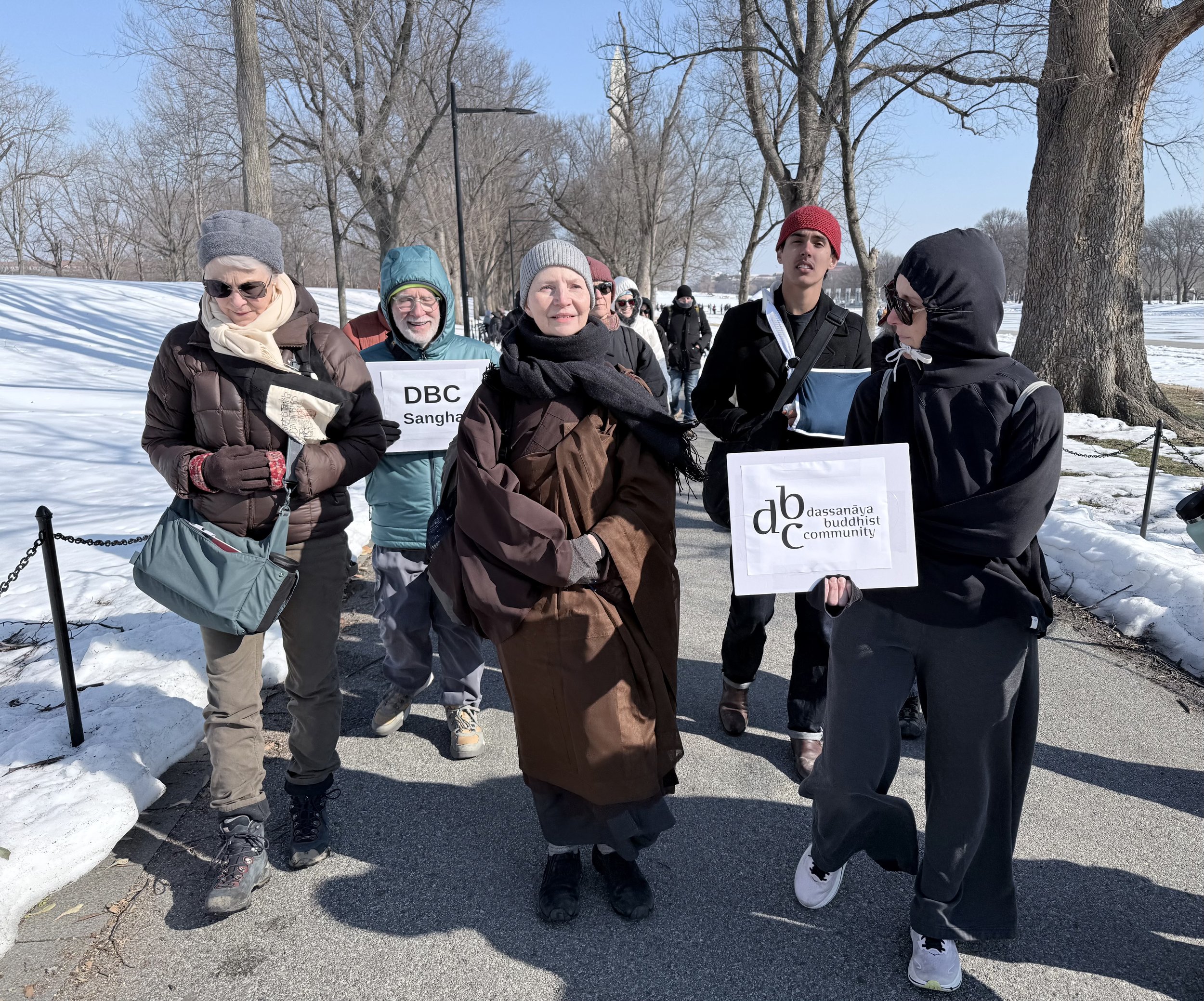 We gathered as a sangha at the foot of the Washington Monument and began slowly processing toward the Lincoln Memorial, where the monks from the Walk for Peace and many other monastics, lay Buddhists, and folks from all walks of life would stand for peace and inter-connection.